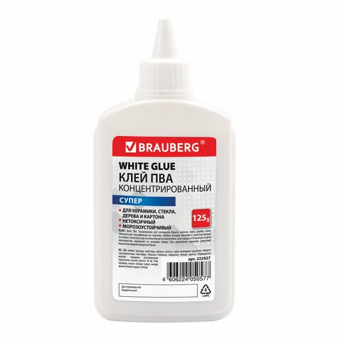 )Клей ПВА СУПЕР BRAUBERG предназначен для склеивания изделий из керамики, ткани, кожи, дерева, бумаги, картона, фотографий.