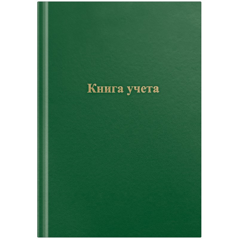 Книга учета А4 96 листов, клетка, блок офсетный, обложка бумвинил, цвет обложки: зеленый, твердый переплет.