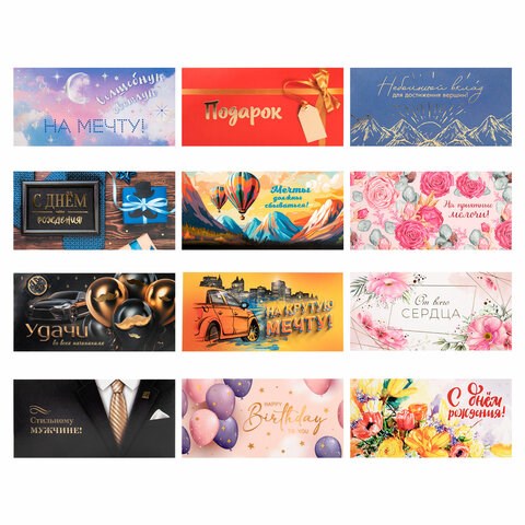Конверт для денег "Классика" 166х82 мм, глиттер, фольга, ЗОЛОТАЯ СКАЗКА, 12 дизайнов, 116360