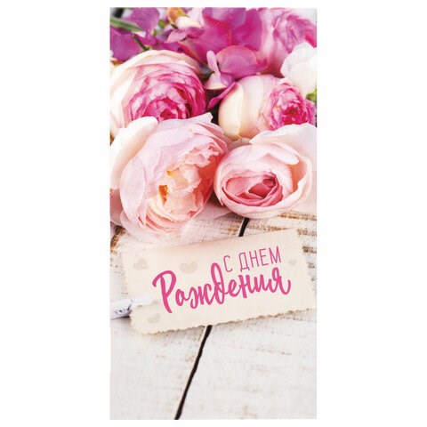 Конверт для денег С ДНЁМ РОЖДЕНИЯ, Розы, 166х82 мм, блестки, ЗОЛОТАЯ СКАЗКА, 113757