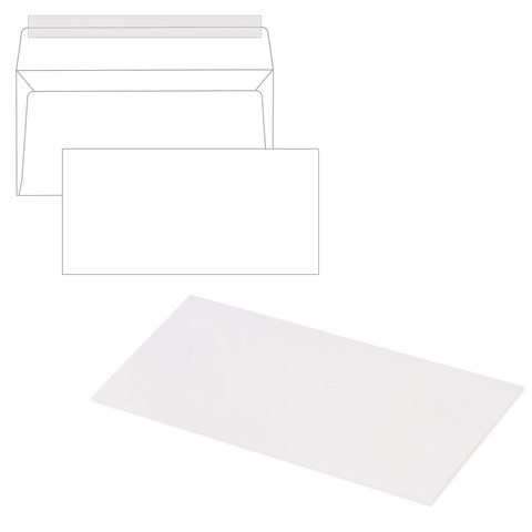 Конверты Е65 (110х220 мм), отрывная лента, 80 г/м2, КОМПЛЕКТ 1000 шт.