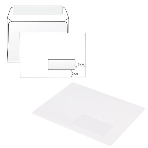 Конверты С5 (162х229 мм) ПРАВОЕ ОКНО, отрывная лента, 80 г/м2, КОМПЛЕКТ 1000 шт.