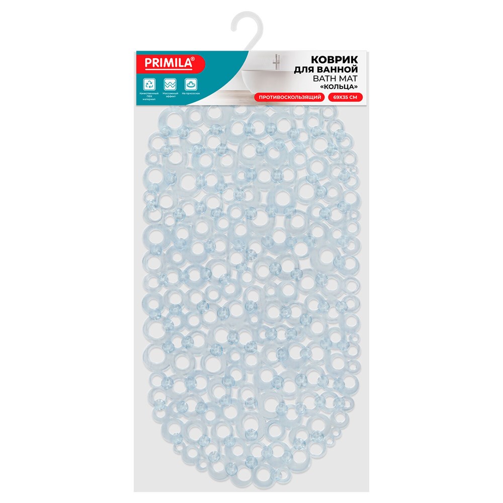 Коврик для ванны противоскользящий 69х35см, "Кольца", овальный, прозрачный, ПВХ, PRIMILA (ПРИМИЛА), 700372