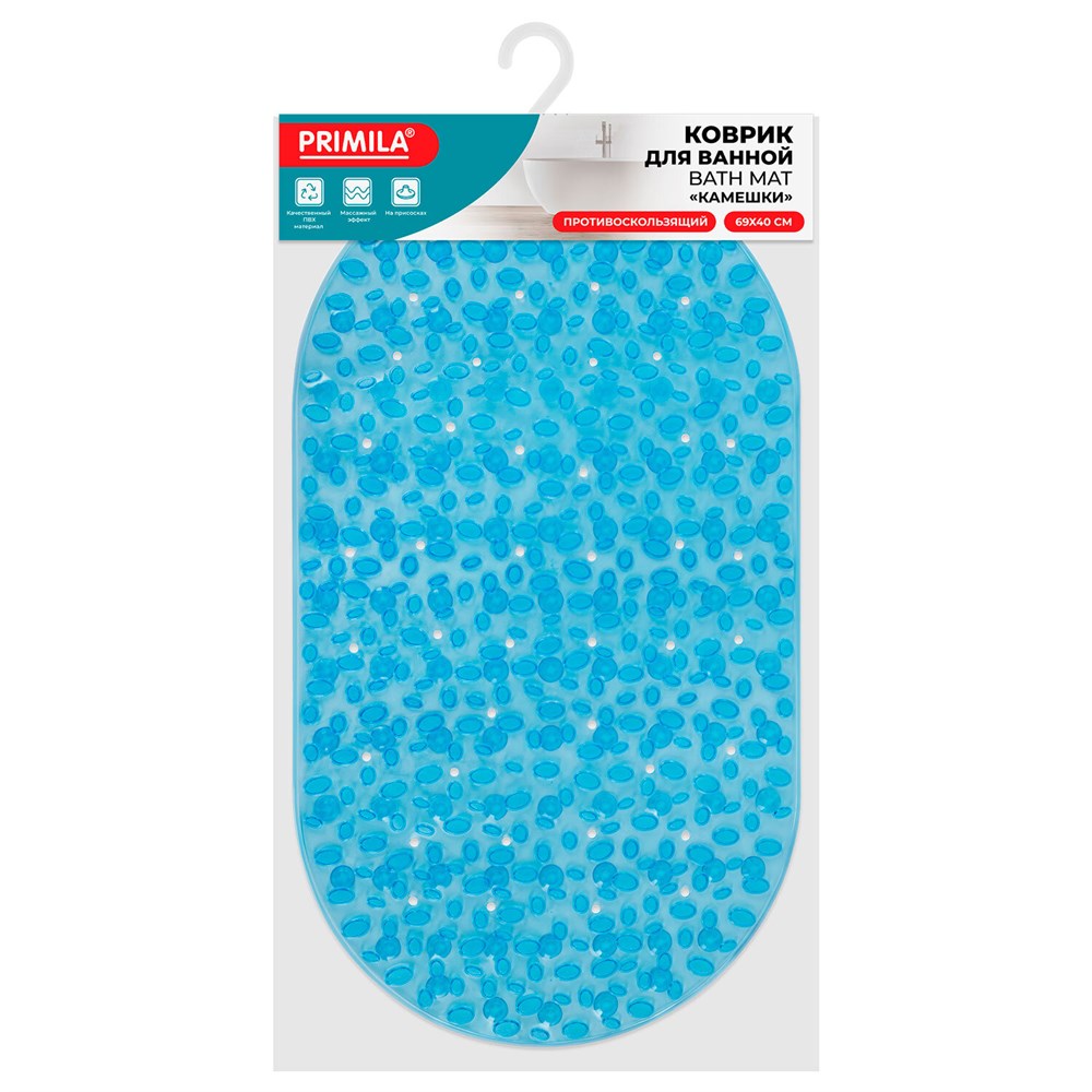 Коврик для ванны противоскользящий 69х40 см, "Камешки", овальный, прозрачно-голубой, ПВХ, PRIMILA (ПРИМИЛА), 700368