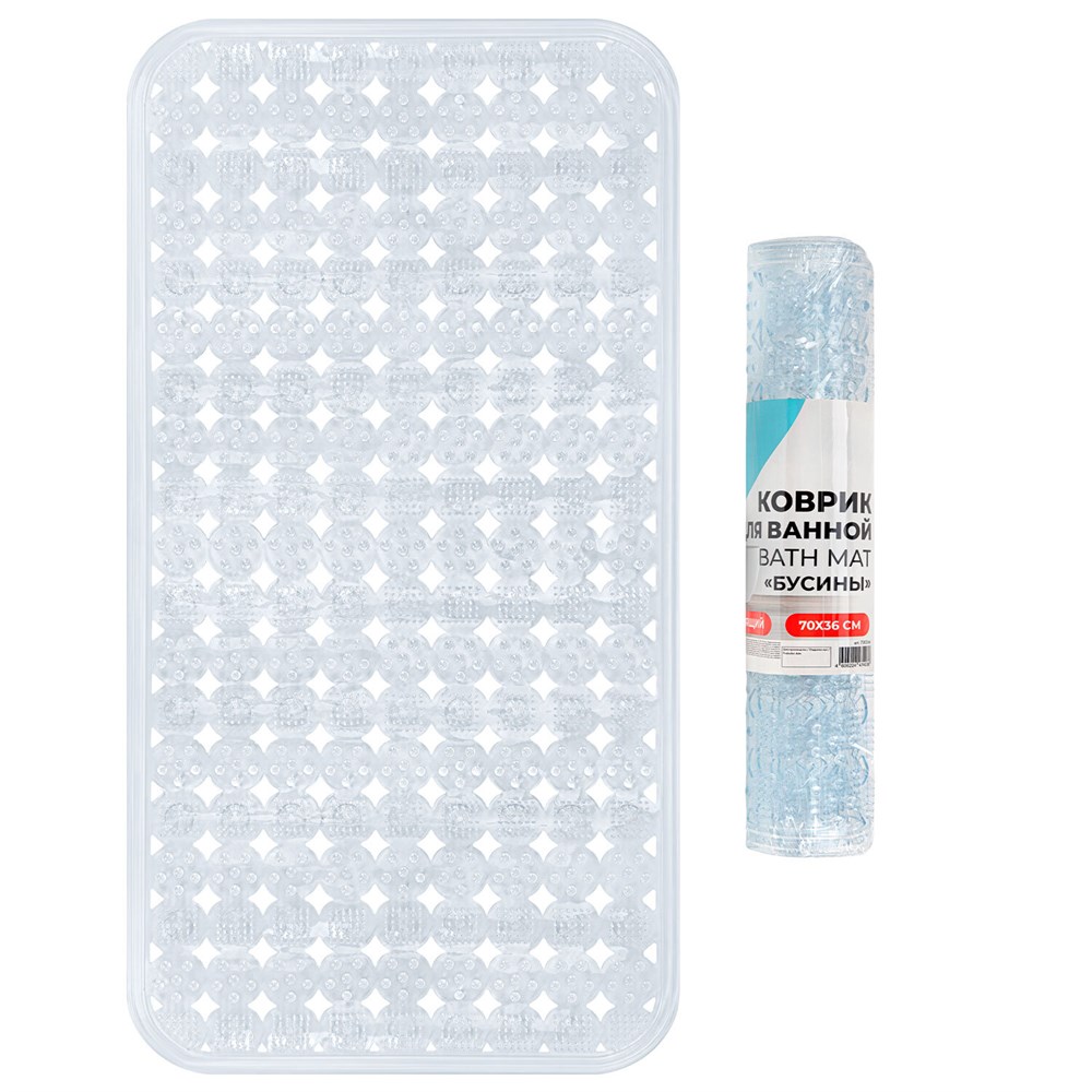 Коврик для ванны противоскользящий 70х36см, "Бусины", прозрачный, ПВХ, присоски, PRIMILA (ПРИМИЛА), 700366