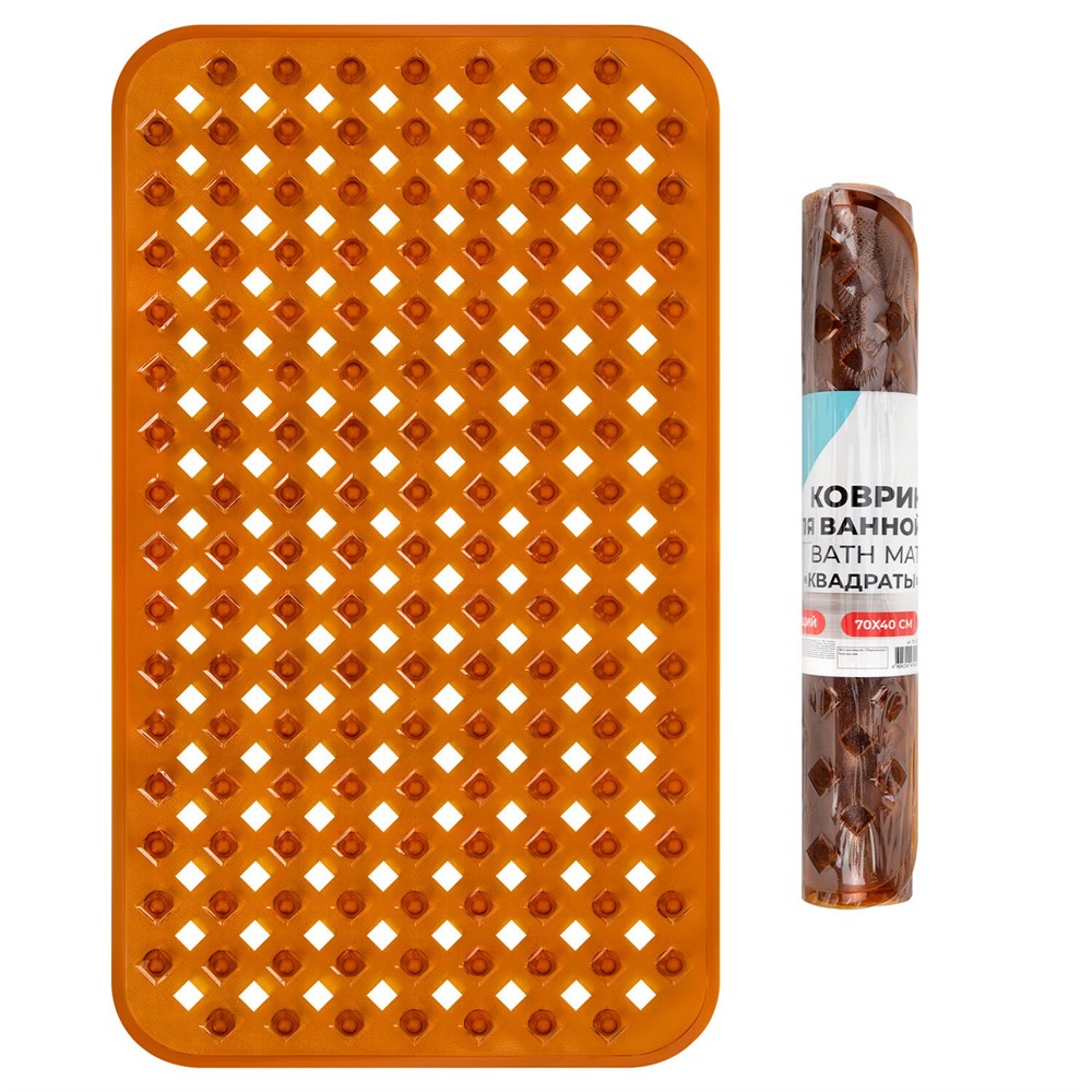 Коврик для ванны противоскользящий 70х40 см, "Квадраты", прозрачно-коричневый, ПВХ, PRIMILA (ПРИМИЛА), 700367