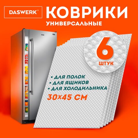 Коврики универсальные 6 шт., 30х45 см, для холодильника, полок, сервировки, прозрачный, DASWERK, 609604