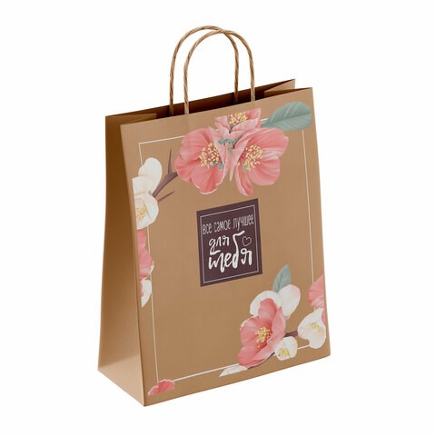 Крафт пакет бумажный Для тебя 22х12х25см с кручеными ручками, плотность 80 гр/м2, 110, 110562