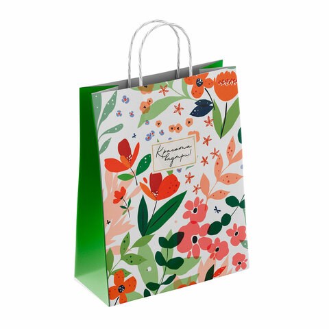 Крафт-пакет бумажный "Красота внутри" 26х15х35 см, с кручеными ручками, плотность 100 г/м2, белый, 113563
