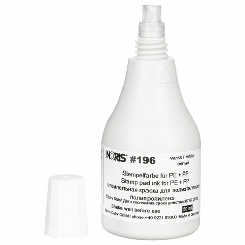 Краска штемпельная NORIS, белая, 50 мл, специальная для полиэтилена и полипропилена, 196Сб