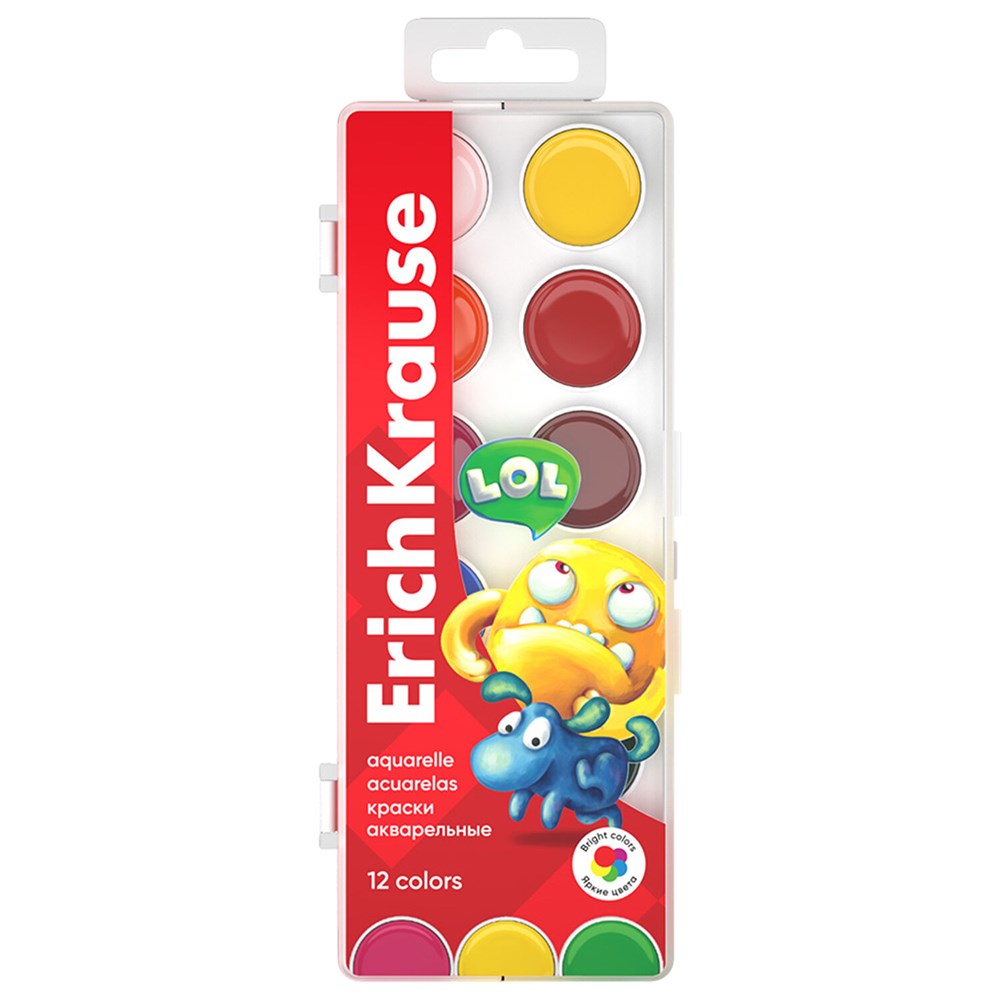 Краски акварельные ERICH KRAUSE "Jolly Friends", 12 цветов, пластиковый пенал, европодвес, 61366