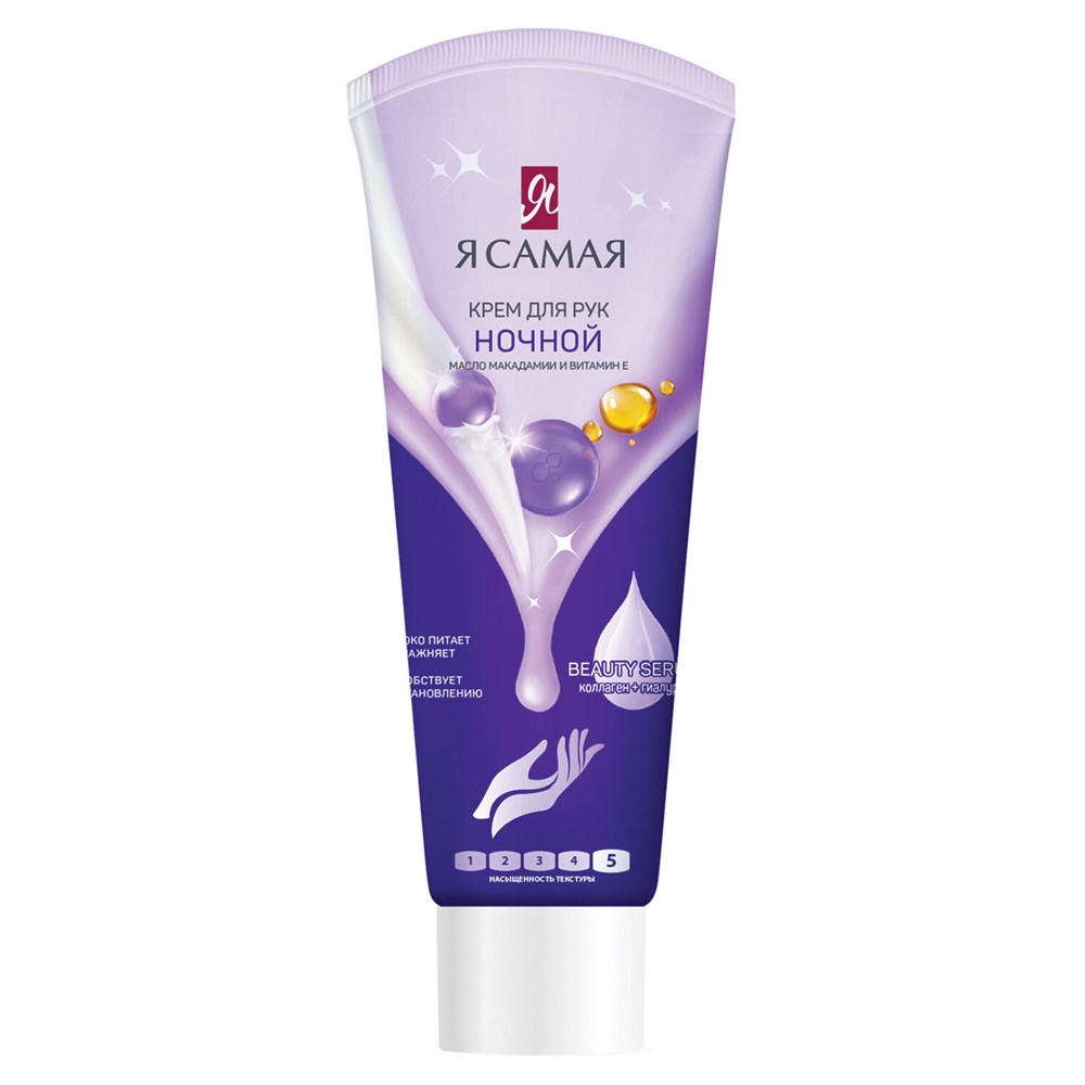 Ночной крем для рук Я САМАЯ обладает способностью смягчать кожу и глубоко увлажнять её. Формула с витамином Е не только стимулирует процессы регенерации, но и замедляет процессы старения.• Особенности и преимущества: