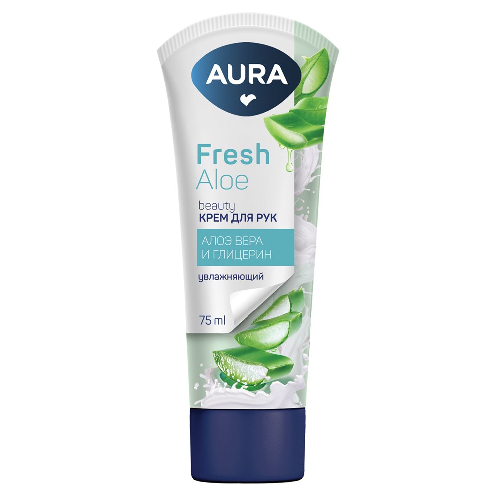 Крем AURA BEAUTY "Алоэ вера и глицерин" интенсивно ухаживает за кожей рук и увлажняет ее.Алоэ вера и глицерин ухаживают за кожей, насыщая ее влагой и придавая гладкость. Легкая текстура крема быстро впитывается, не оставляя плёнки и ощущения липкости.