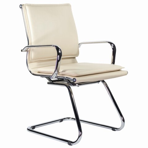 Кресло для приемных и переговорных BRABIX Kayman CF-102, экокожа, хром, бежевое, 532573
