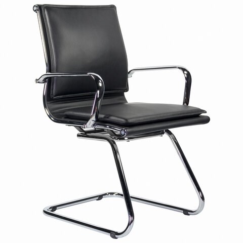 Кресло для приемных и переговорных BRABIX "Kayman CF-102", экокожа, хром, черное, 532572