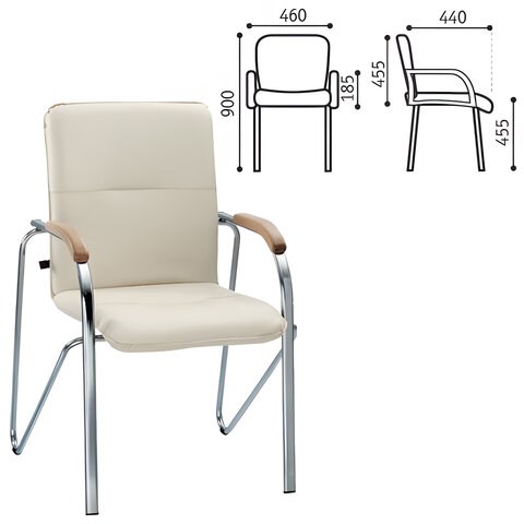 Кресло для приемных и переговорных "Samba", деревянные накладки, хромированный каркас, кожзам бежевы