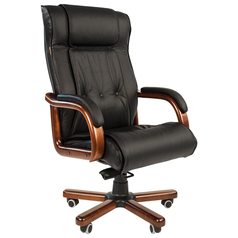Кресло из натуральной кожи CH 653, дерево, черное, 7001203