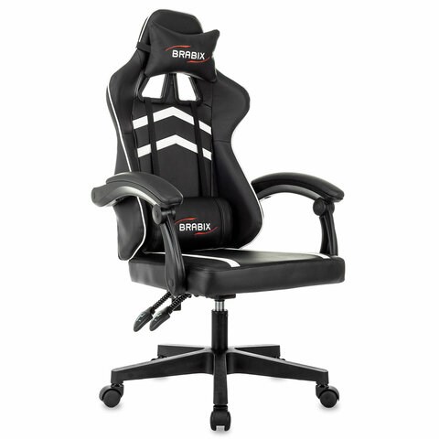 Кресло компьютерное BRABIX "Shooter GM-123", 2 подушки, экокожа, черное/белое, 533191