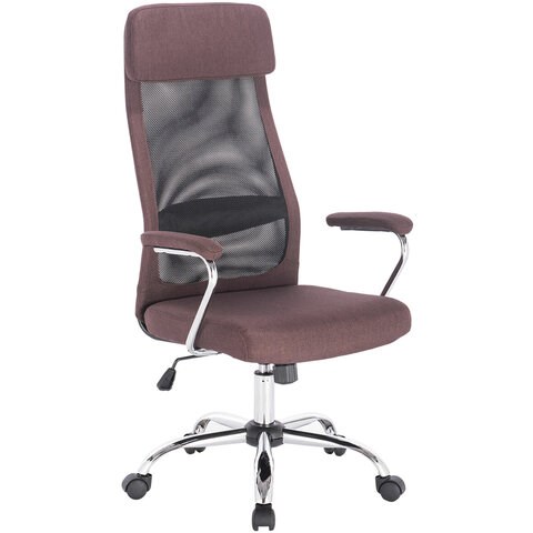 Кресло офисное BRABIX "Flight EX-540", хром, ткань, сетка, коричневое, 531849