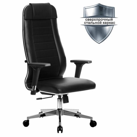 Кресло офисное МЕТТА "К-29-2D" хром, экокожа, сиденье и спинка мягкие, черное