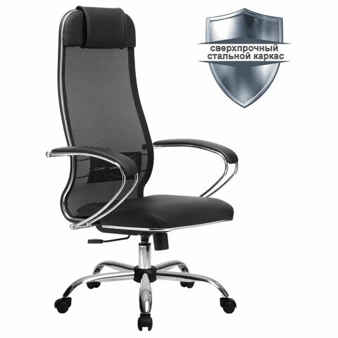 Кресло офисное МЕТТА "К-5.1" хром, ткань-сетка/экокожа, сиденье мягкое, черное