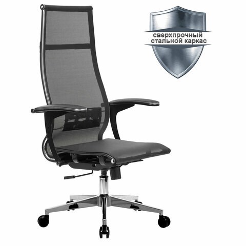 Кресло офисное МЕТТА "К-7-Т" хром, прочная сетка, сиденье и спинка регулируемые, черное