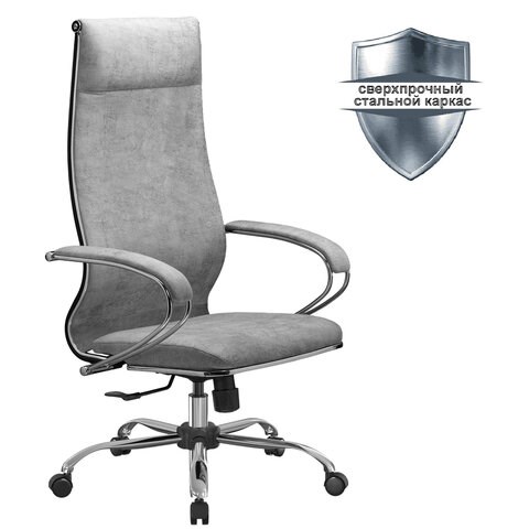 Кресло офисное МЕТТА "L1m 42", хром, сиденье и спинка мягкие, велюр, светло-серое