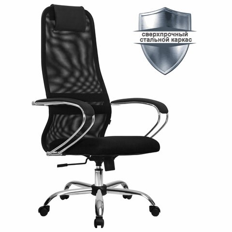 Кресло офисное МЕТТА "SU-B-8" хром, ткань-сетка, сиденье мягкое, черное