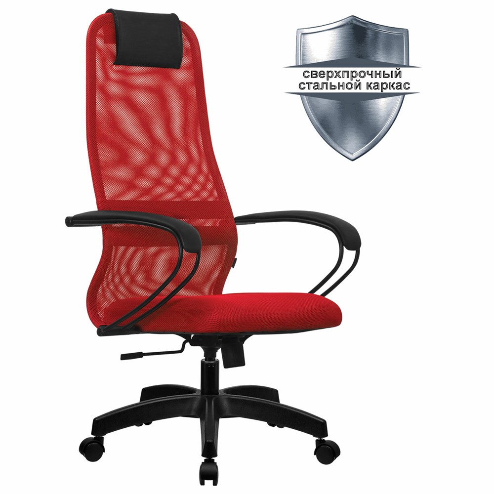 Кресло офисное МЕТТА "SU-B-8" пластик, ткань-сетка, сиденье мягкое, красное