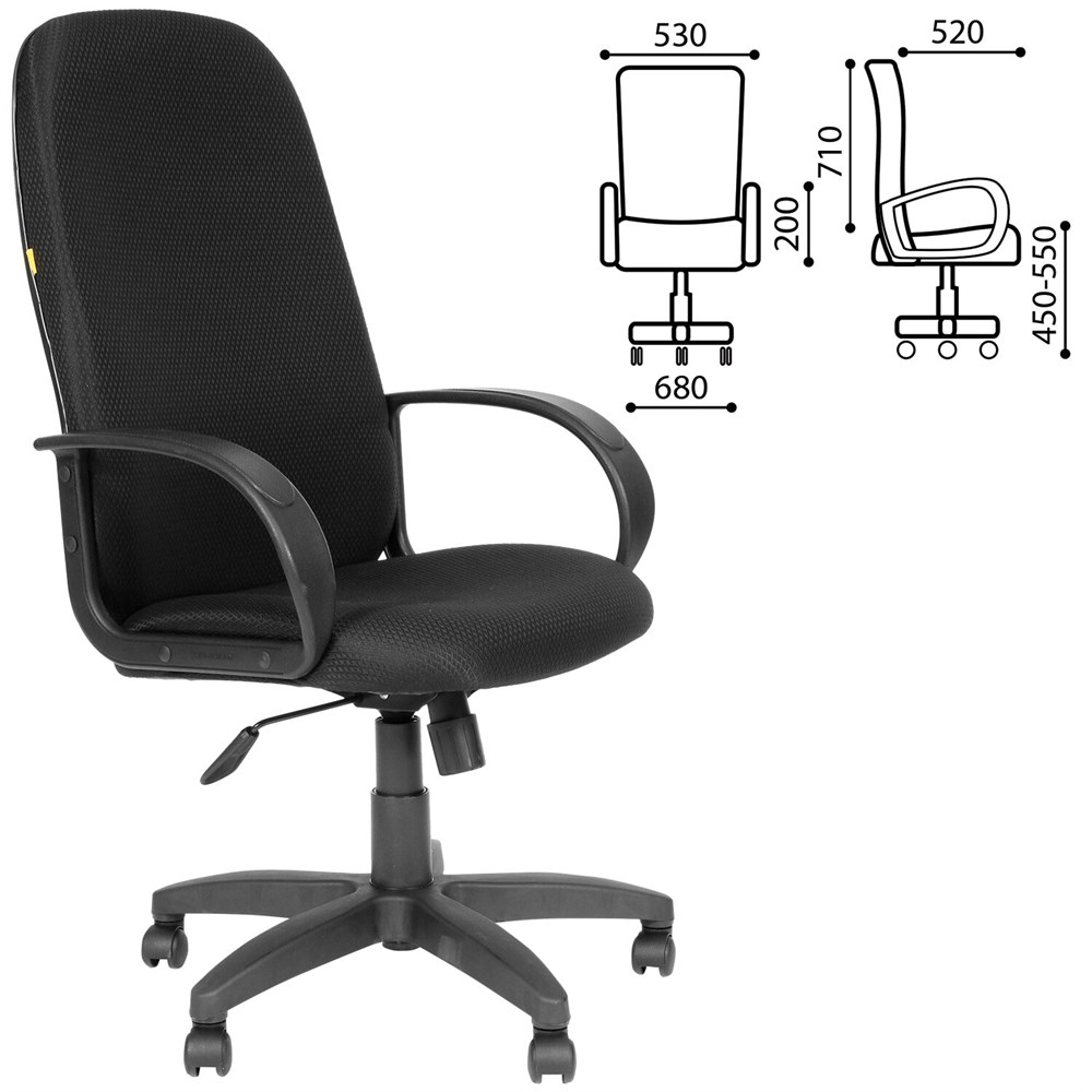 Кресло офисное СН 279, высокая спинка, с подлокотниками, черное, 1138105