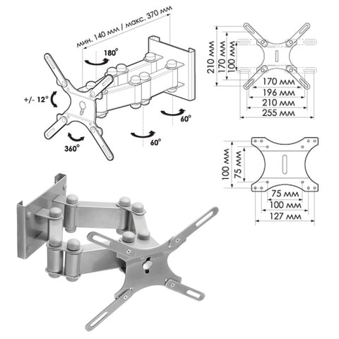 Кронштейн-крепление для ТВ настенный ЖК-130, VESA 75-200/200, 15-32", 3 ст. своб., 25 кг