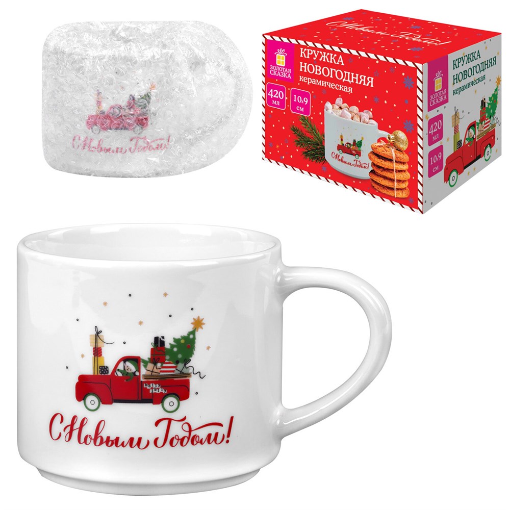 Кружка новогодняя 420 мл "Машинка", 10х9 см, каменная керамика, ЗОЛОТАЯ СКАЗКА, 592545