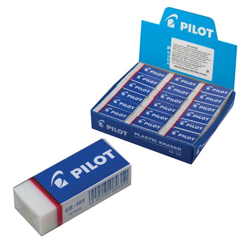 Ластик PILOT, 42х18х12 мм, прямоугольный, белый, картонный держатель, EE-101