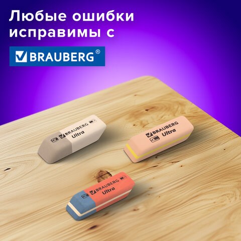 )Ластики BRAUBERG «Ultra» предназначены для удаления надписей, сделанных чернографитным карандашом или чернилами.