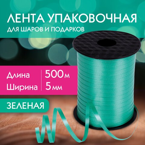 Лента упаковочная декоративная для шаров и подарков, 5 мм х 500 м, зеленая, ЗОЛОТАЯ СКАЗКА, 591809
