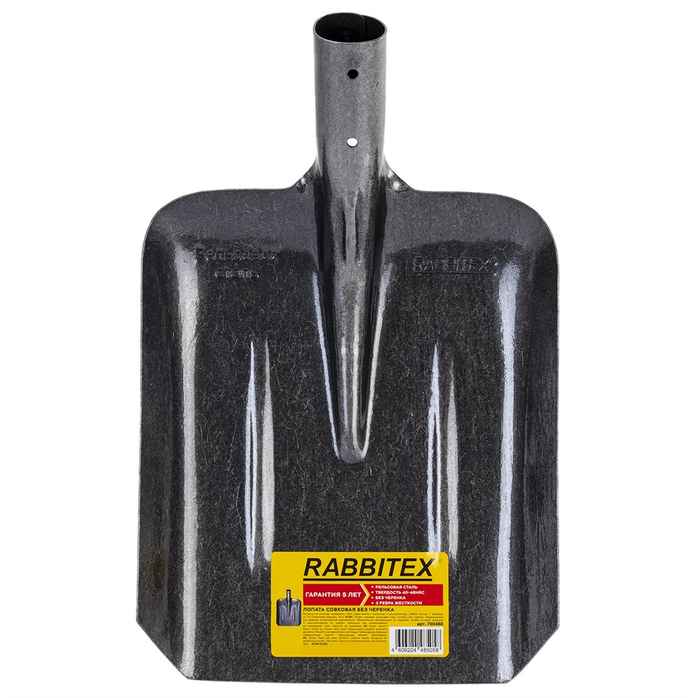 Совковая лопата без черенка RABBITEX "RAIL STEEL" из рельсовой стали – ваш надежный помощник в садовых и строительных работах. Высокое качество материала, ребра жесткости и универсальная тулейка помогут вам сделать работу легче и продуктивнее.Совковая лопата без черенка RABBITEX "RAIL STEEL" выполнена из рельсовой стали. Широкое рабочее полотно и тулейка круглого сечения диаметром 4 см легко справятся с любыми нагрузками и прослужат вам долгие годы.