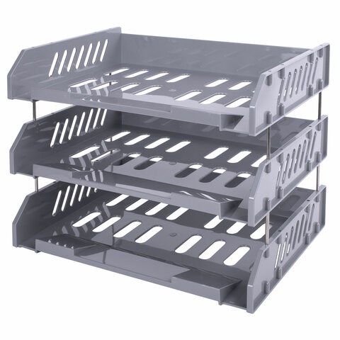 Лотки горизонтальные для бумаг, КОМПЛЕКТ 3 шт., 335х232х246 мм, серый, BRAUBERG FILE, 238108