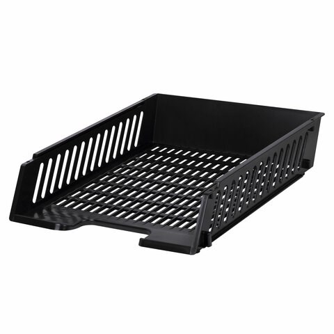 Лоток горизонтальный для бумаг BRAUBERG-MAXI, с пазами, А4 (358х272х69 мм), сетчатый, черный, 231141