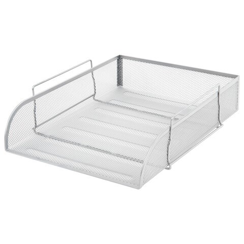 Лоток горизонтальный металлический для бумаг BRAUBERG "Germanium", А4 (260х337х77 мм), серебристый, 231955