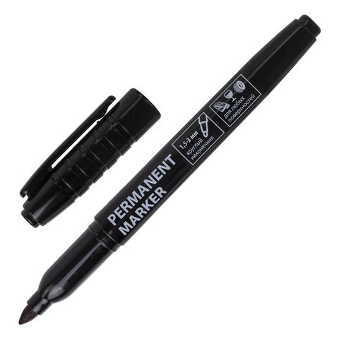Маркер перманентный (нестираемый) BRAUBERG, ЧЕРНЫЙ, круглый наконечник, 1,5-3 мм, с клипом, 151629