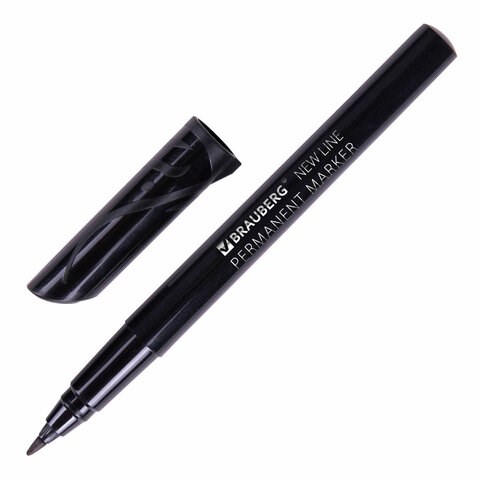 Маркер перманентный (нестираемый) BRAUBERG NEW LINE, ЧЕРНЫЙ, круглый наконечник 2 мм, 152209