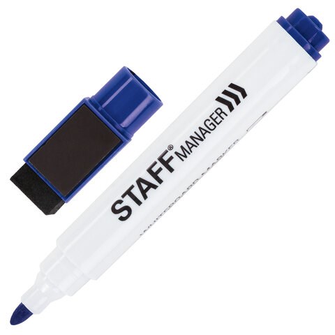 Маркер стираемый для белой доски на магните со стирателем, СИНИЙ, STAFF "Manager" WBM-002, 3 мм, 152004