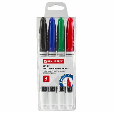 )Высококачественный набор маркеров BRAUBERG для белой доски. Предназначен для письма на досках с магнитно-маркерной поверхностью.