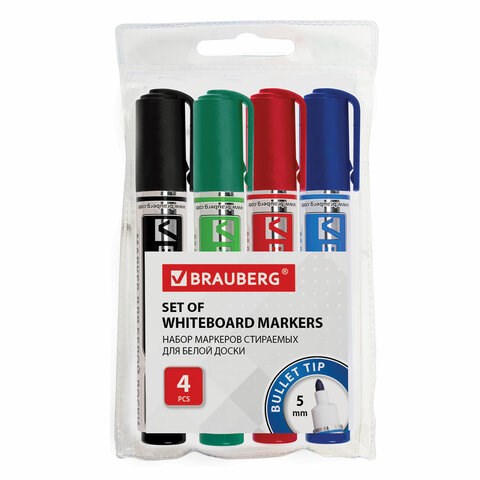)Высококачественный набор маркеров BRAUBERG «NEO» для белой доски. Предназначен для письма на досках с магнитно-маркерной поверхностью.