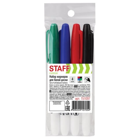 )Набор маркеров STAFF для белой доски. Предназначен для письма на досках с магнитно-маркерной поверхностью.