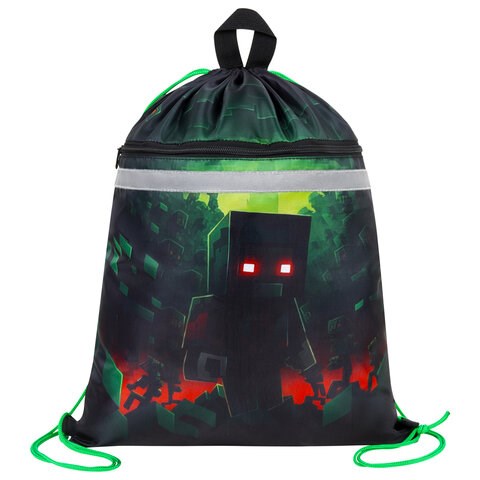 Мешок для обуви BRAUBERG, с петлей, светоотражающая полоса, 2 отделения, 46х36 см, Night warrior, 272396