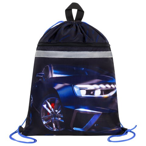 Мешок для обуви BRAUBERG, с петлей, светоотражающая полоса, 2 отделения, 46х36 см, Super car, 272397
