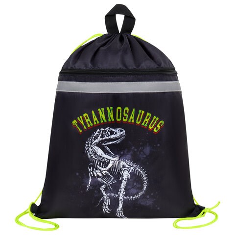 Мешок для обуви BRAUBERG, с петлей, светоотражающая полоса, 2 отделения, 46х36 см, Tyrannosaur, 272399