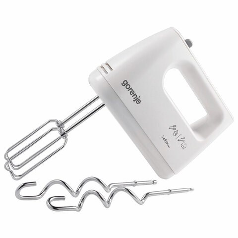 Миксер GORENJE M360CW, 300 Вт, 5 скоростей, 2 венчика, 2 крюка для теста, белый, 73334