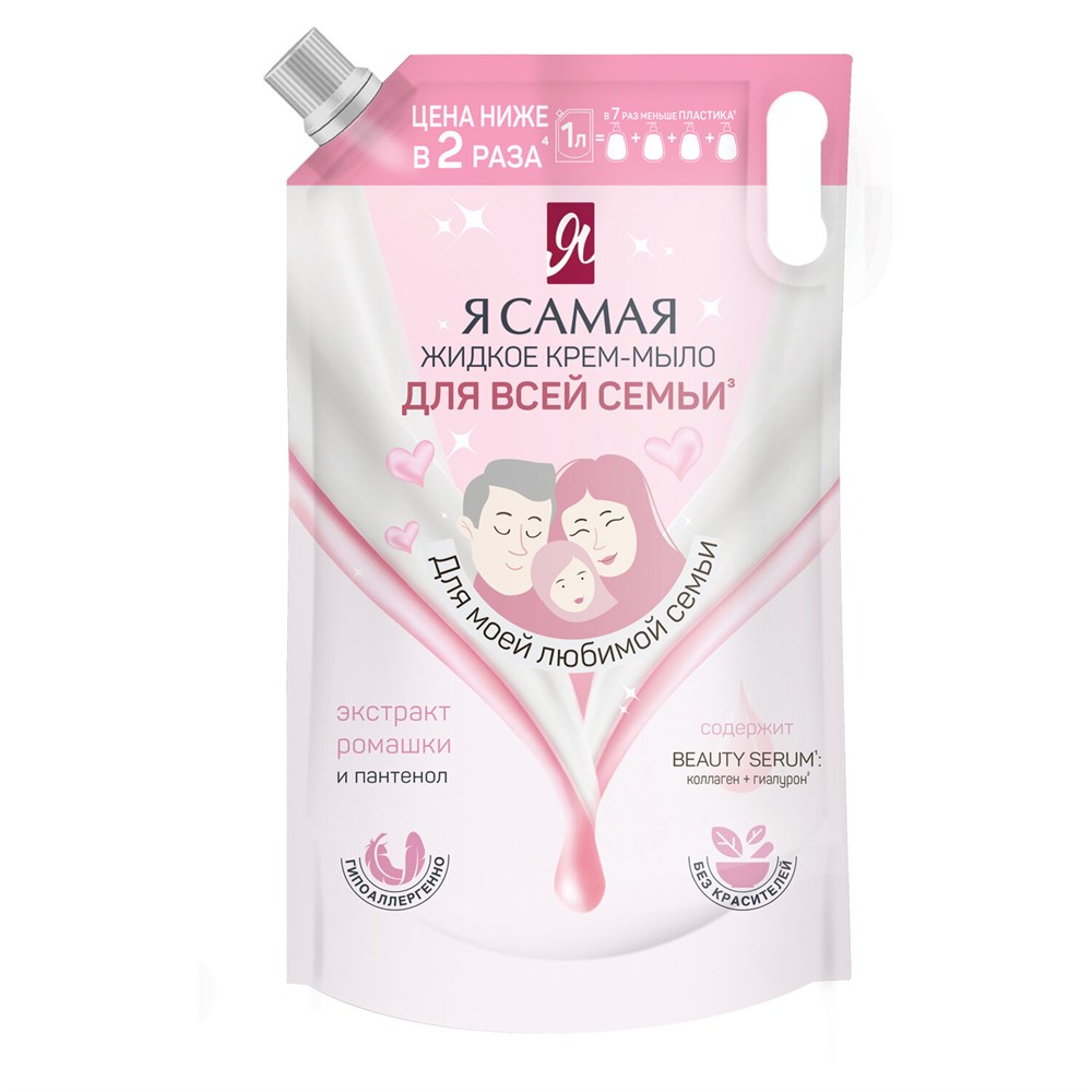 Мыло-крем гипоаллергенное 1 л, Я САМАЯ "Экстракт ромашки и пантенол", дой-пак, 14424